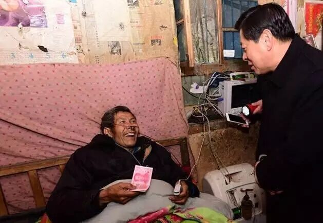 59岁的魏立炎插着呼吸机,躺在昏暗的土房里,看到有人进门,只能用低沉沙哑的声音说:“救救我,救救我。我很难受。”当金磊夫把1000元的捐款递到他手上,他马上说:“我不好意思啊。”